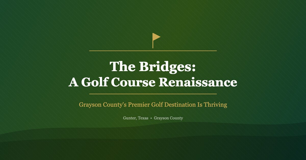The Bridges Golf Club in Gunter is experiencing a full-blown renaissance — new bunkers, rebuilt bridges, resort amenities, and a booming community signal that this Fred Couples signature course is just getting started.
